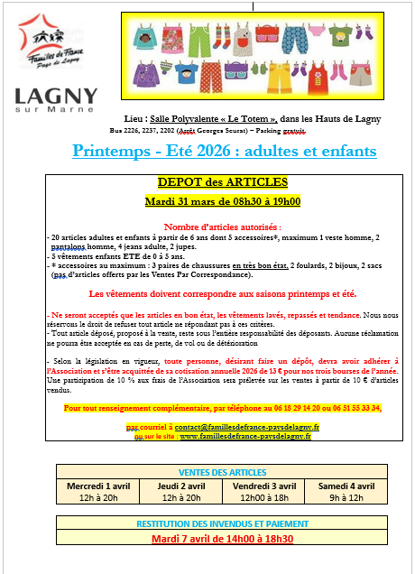 Familles de France – Pays de Lagny est une association apolitique et laïque. Elle est agréé association de consommateurs.
