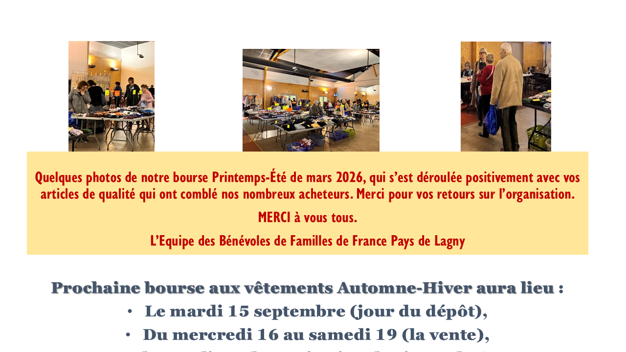Nous organisons régulièrement des Bourses aux Vêtements pour aider les familles.